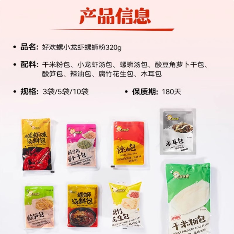 好歡螺—经典原味300克,加量原味400克,小龙虾味320克,番茄牛腩385克,花甲味315克,素毛肚375克,干拌款355克 沖泡型230g-單包訂購專用鏈接。